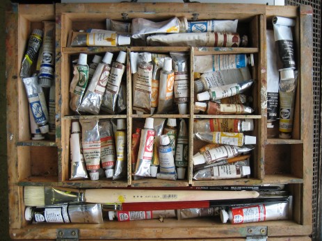 Sonstige Farben: Kadmiumgelb, Zitronengelb, Karmesinrot, Manganese Blau, ungebrannte Umbra und einfach sämtliche Farben, die man zuhause hat.
